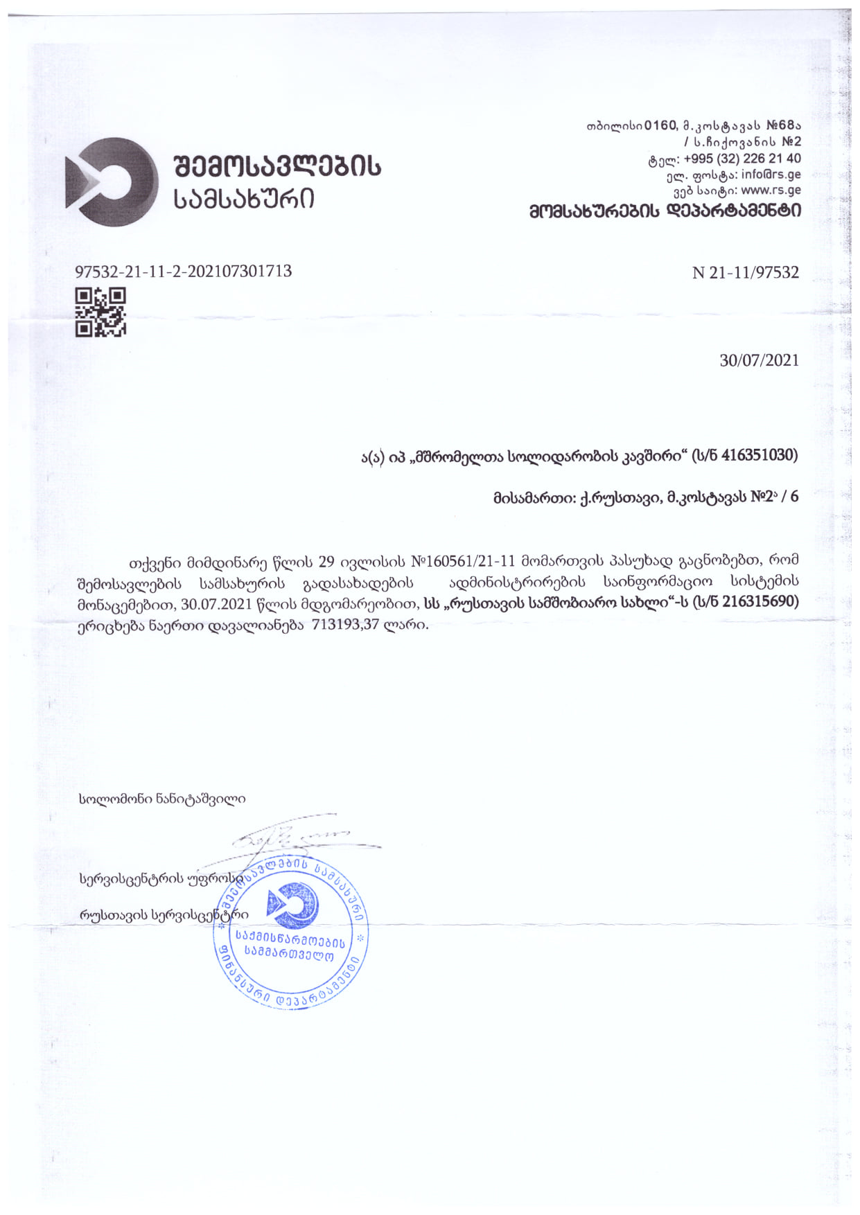 საქართველოს პროფესიული კავშირების გაერთიანების რუსთავის რეგიონის წარმომადგენლობამ შემოსავლების სამსახურსაც მიმართ. გაირკვა, რომ მიმდინარე წლის 30 ივლისის მდგომარეობით, სამშობიარო სახლს აქვს 713 193 ლარის დავალიანება.